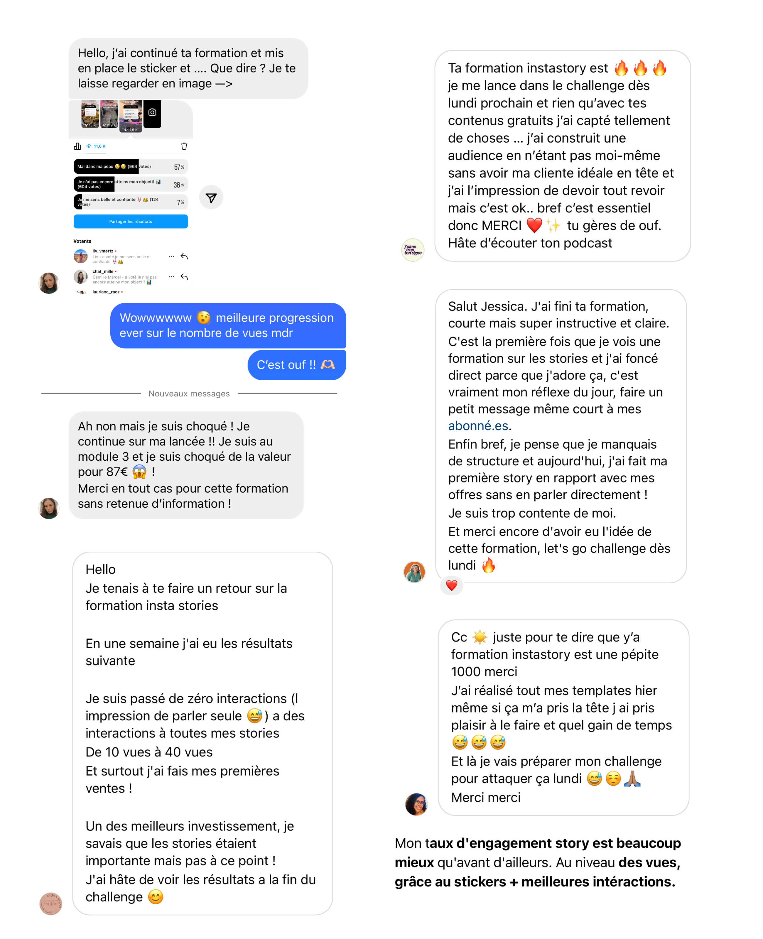 Je suis conquise. J'ai le sentiment de savoir ce que je dois faire et dans quelle direction je dois avancer. Depuis que je mets en application les conseils de Jessica, mon compte Instagram redécolle après avoir passé plus d'un an à stagner ! Et bien sûr je génère plus de revenus !